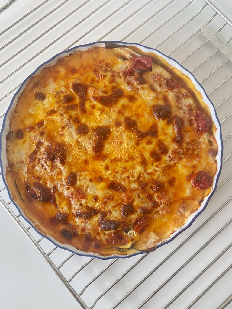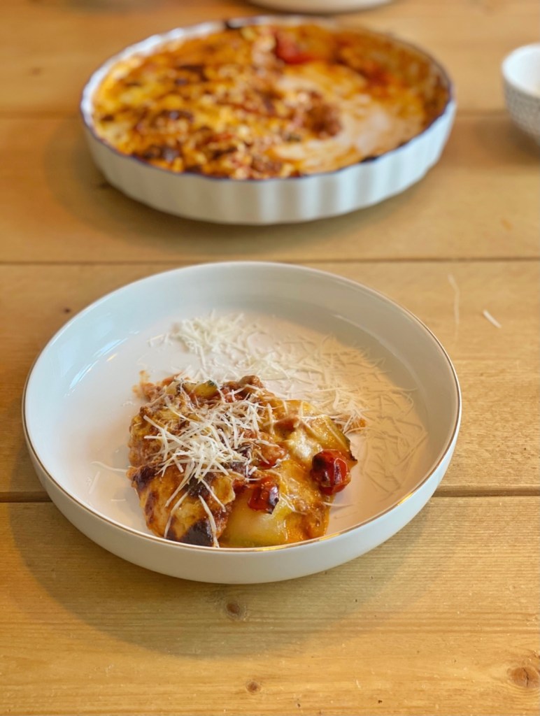- Courgette, gehakt, ricotta, courgette, gehakt, ricotta en als laatste natuurlijk nog wat extra pecorino.